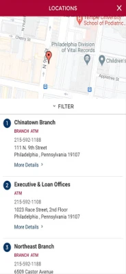 Locations - Find nearby branches and ATMs using your phone's built-in GPS. Additionally, you can search by zip code or address.