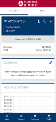 Start banking wherever you are with the Asian Bank Mobile App! Available to all Asian Bank Mobile Banking end users. The Asian Bank Mobile App allows you to check balances, make transfers, find locations and deposit checks. Need to find a branch or ATM closest to you? With Find Near Me, the Asian Bank Mobile App will discover your location and provide you with addresses and phone numbers on the fly.
