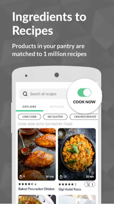 • Over 1 million recipes generated by your pantry inventory to show you healthy recipes you can cook now