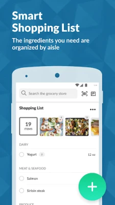 • The grocery shopping list, pantry inventory, and recipes are shared with the household