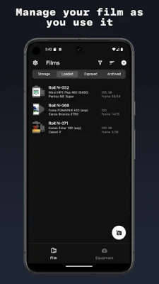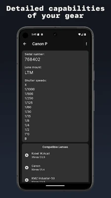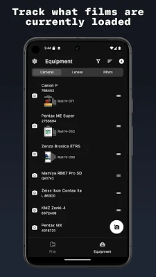 - Master your equipment, learn its strengths & quirks, and improve your skills by recording equipment settings with each shot.