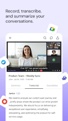 - Create soundbites and easily share the most memorable moments from meetings.