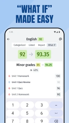 Calculate how future grades, dropped assignments, retakes, etc. will impact your class average.