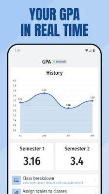 Predict your GPA in real time using fully customizable scales. Plus, see how each class impacts your GPA, or how different class averages would affect your GPA.