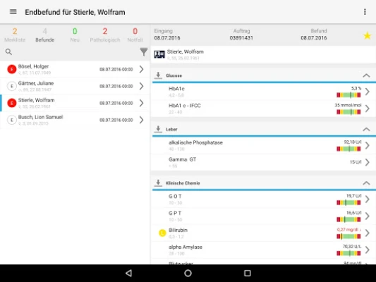 Nutzen Sie Labor Online um Ihre Laborergebnisse auf Ihrem mobilen Endgerät zu betrachten. Egal ob neue, pathologische oder dringende Befunde, dank Labor Online und der integrierten Unterstützung für Push-Benachrichtigungen bleiben Sie immer auf dem neusten Stand. Nutzen Sie die Merkliste um sich bei wichtigen Befunden sofort über jegliche Änderungen informieren zu lassen.