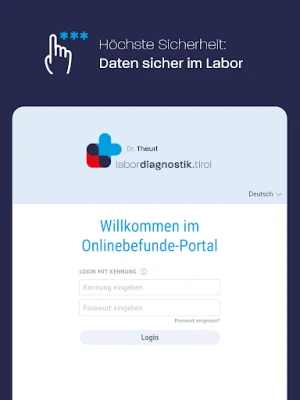 Mit der LaborTirol App ist es Ärzt*innen des Labor Dr. Theurl (labordiagnostik.tirol) möglich Befunde schnell und sicher einzusehen und zu verwalten. Validierte Befunde stehen in Echtzeit zur Verfügung und auch Teilbefunde können aus den bereits validierten Parametern generiert werden. Die Befund- und Patientendaten sind mit höchsten Sicherheitsstandards geschützt.