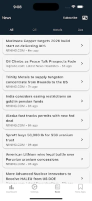 Follow the latest market headlines across all commodities in a single, easy-to-read list.