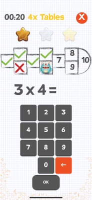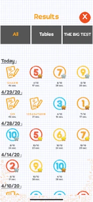 Two game modes: - Work only on a multiplication table - Choose your multiplication tables for "the big test".