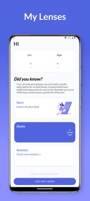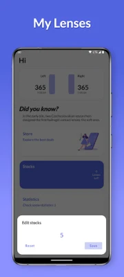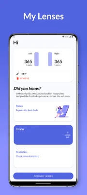 FEATURES: ⚫ Notification the day your lenses will "expire" ⚫ Separate management for left and right lenses ⚫ Possibility to edit current lenses ⚫ *Semi-automatic* management ofremaining lenses ⚫ Charts! ⚫ MANY MORE :)