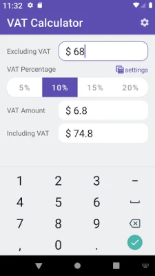 Enter the amount excluding tax or the amount including tax and choose the VAT rate.